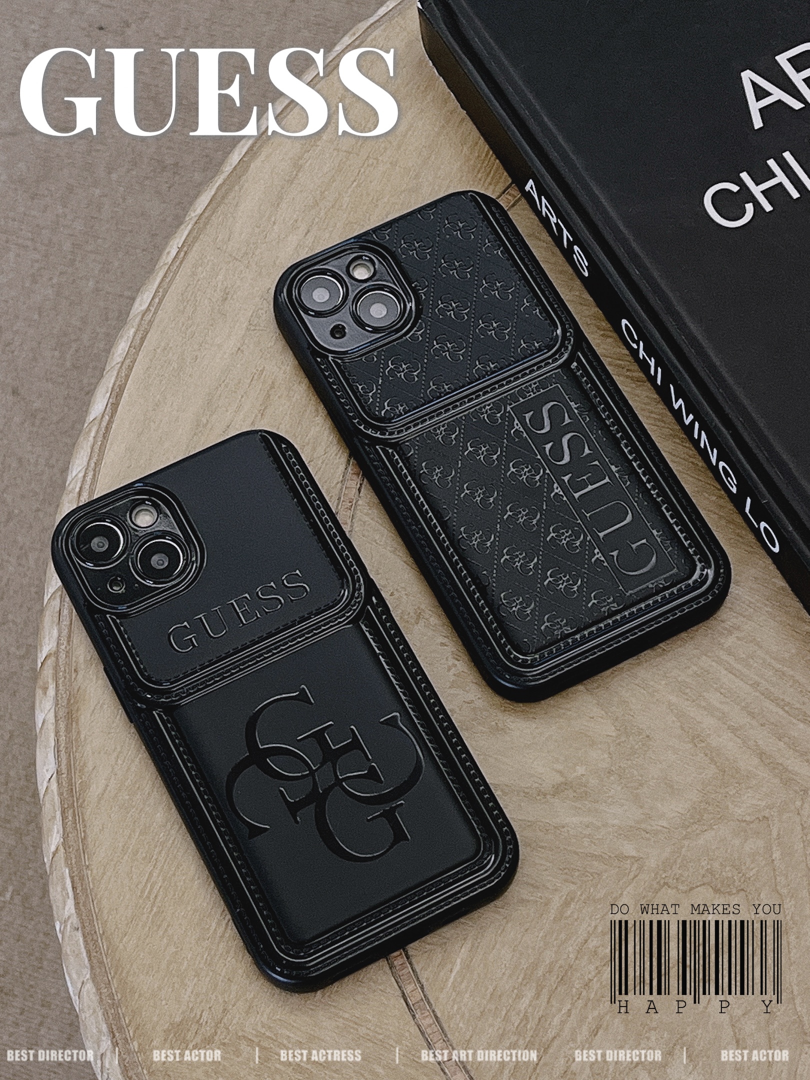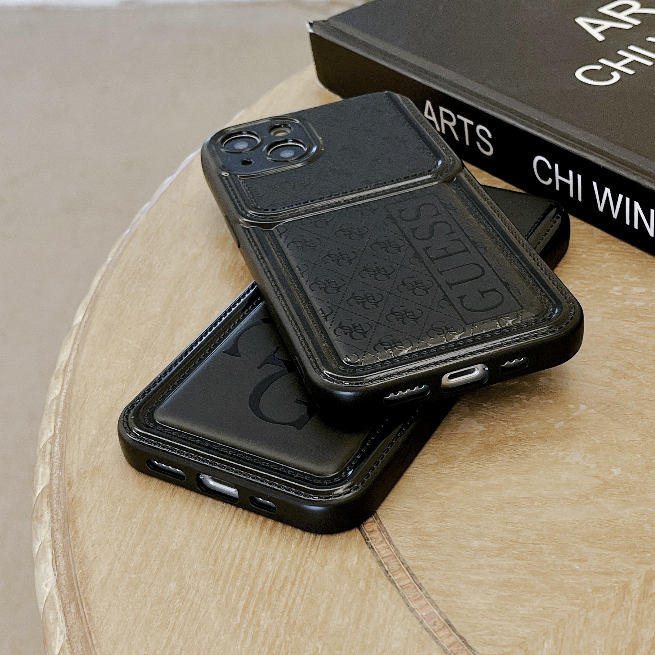 GUESS Black Vintage Leather iPhone Case