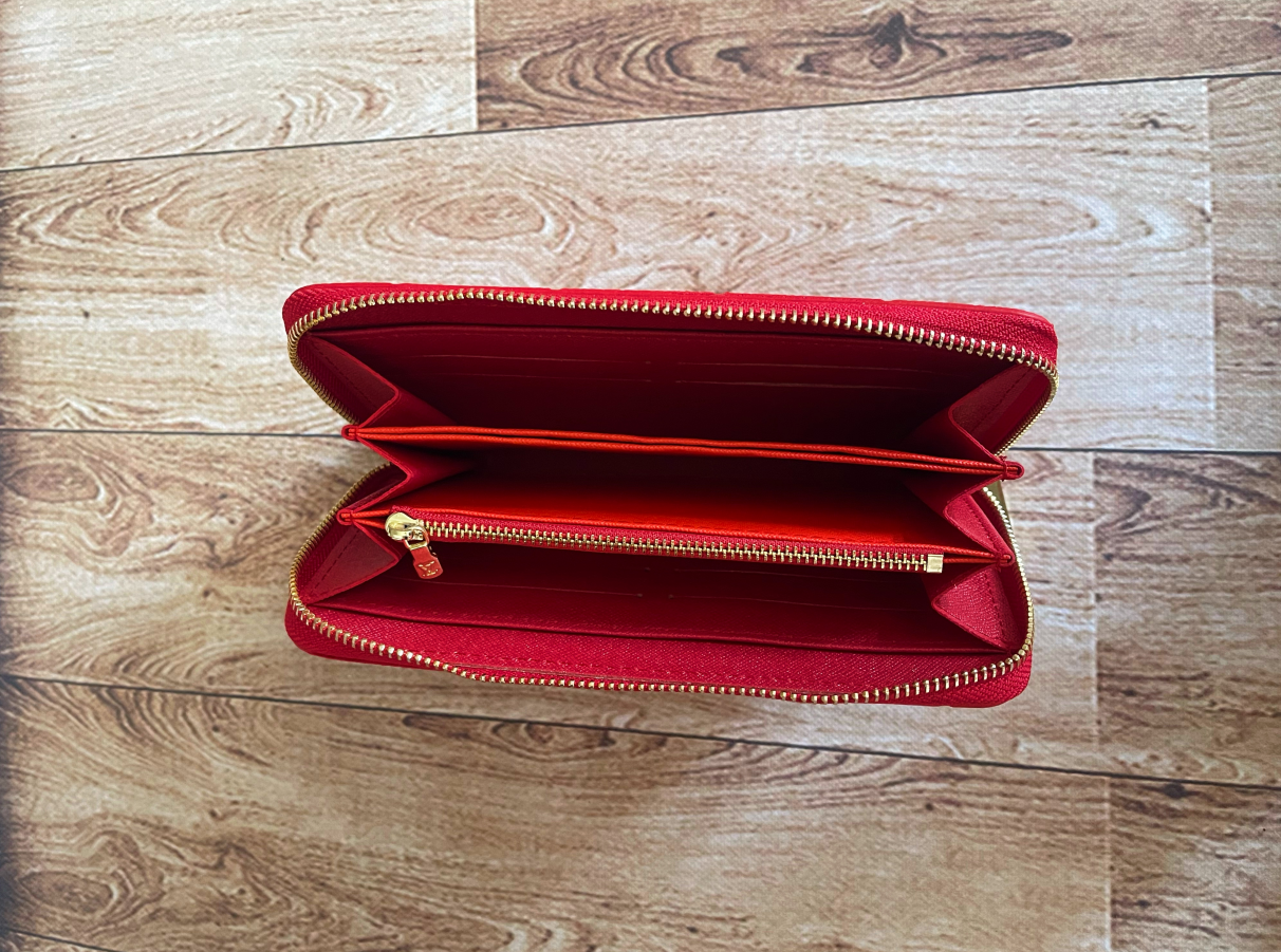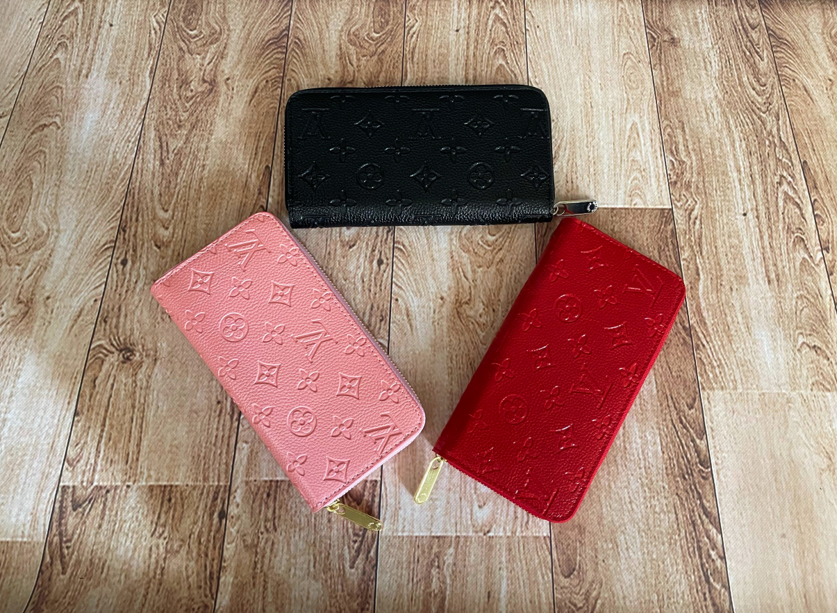 This long leather wallet features a zipper closure. The central zipper pocket and two large storage compartments can store cards, banknotes, coins and other daily documents.