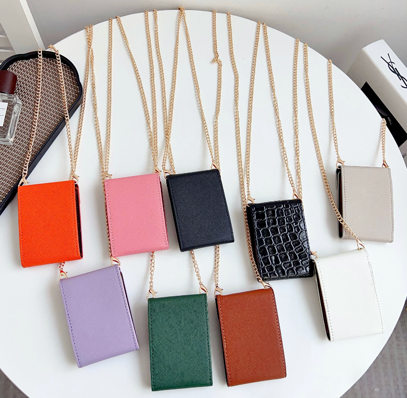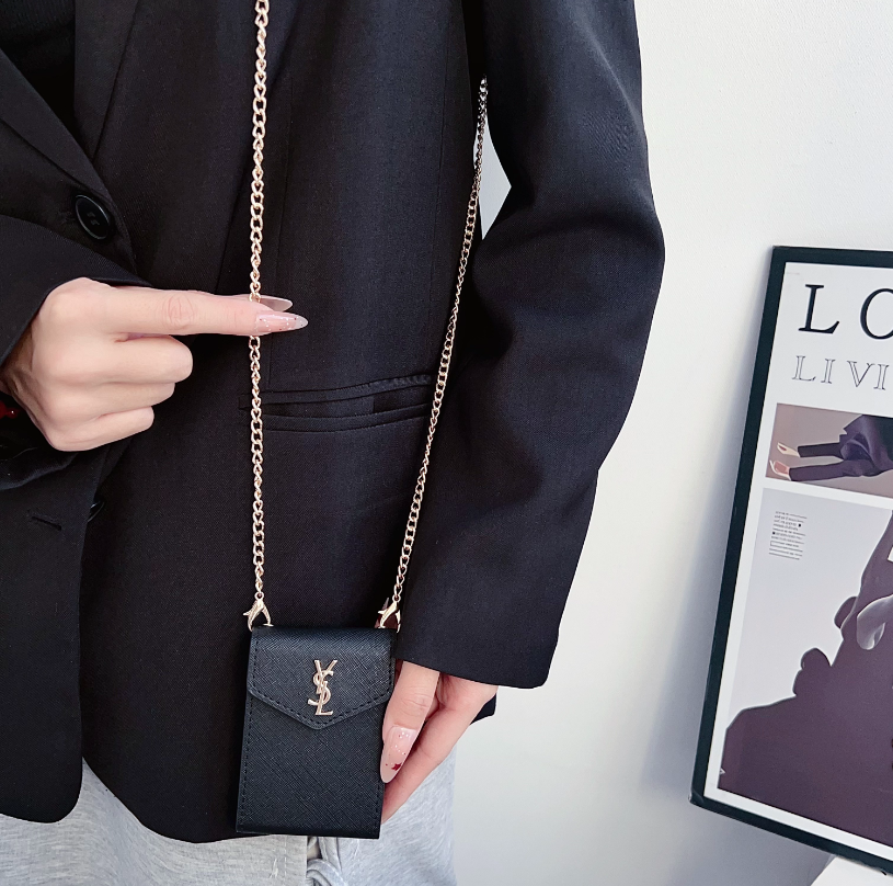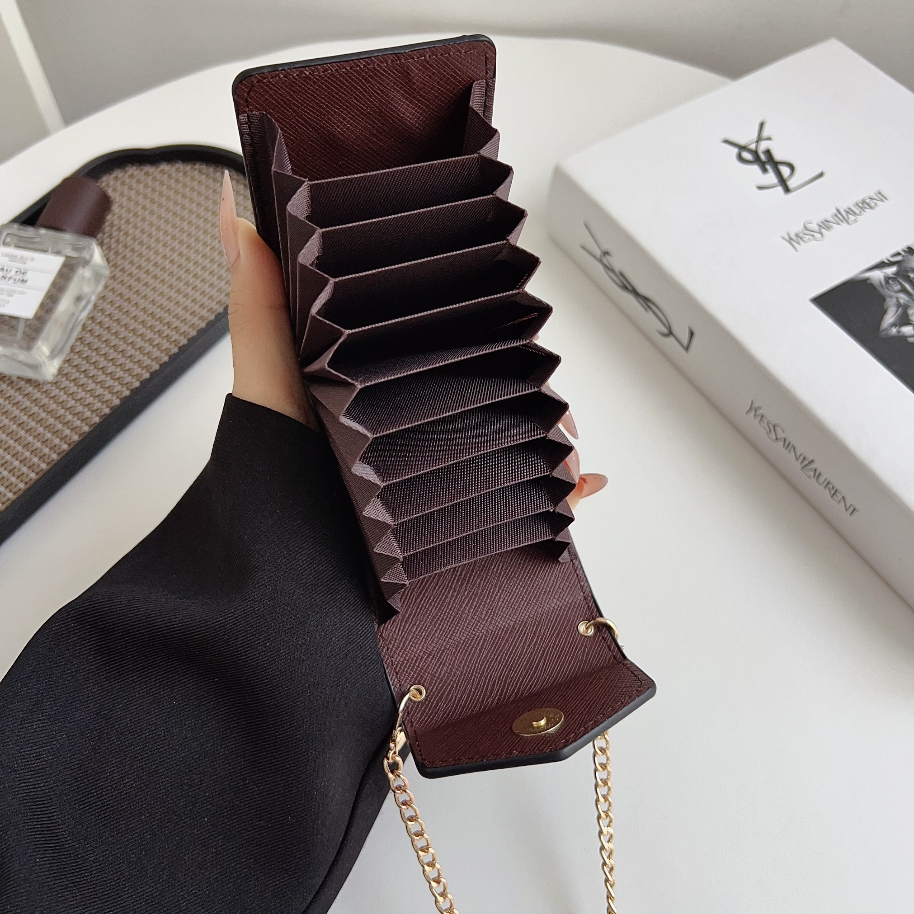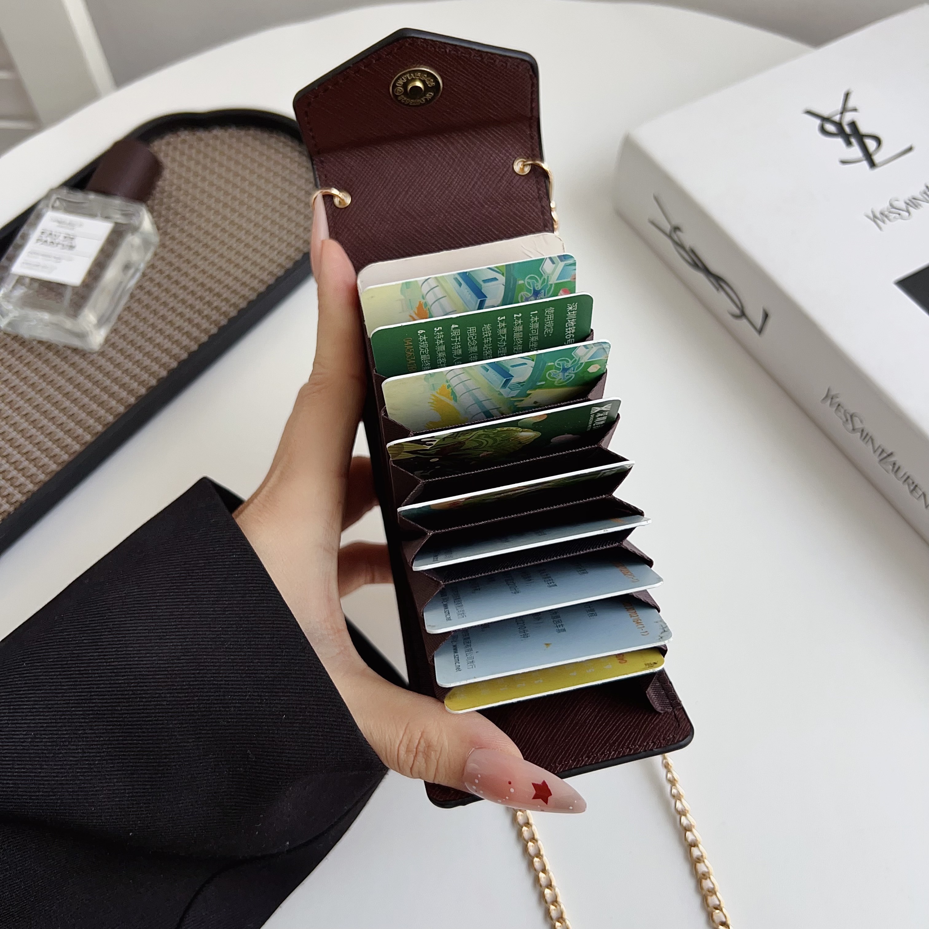 This new cardholder necklace is stylish and beautiful, ideal for carrying cards and other small items. Crafted from luxurious leather, it features a slim shoulder strap and a secure double snap closure. This small and practical accessory can be easily worn around the neck or slipped into a bag.