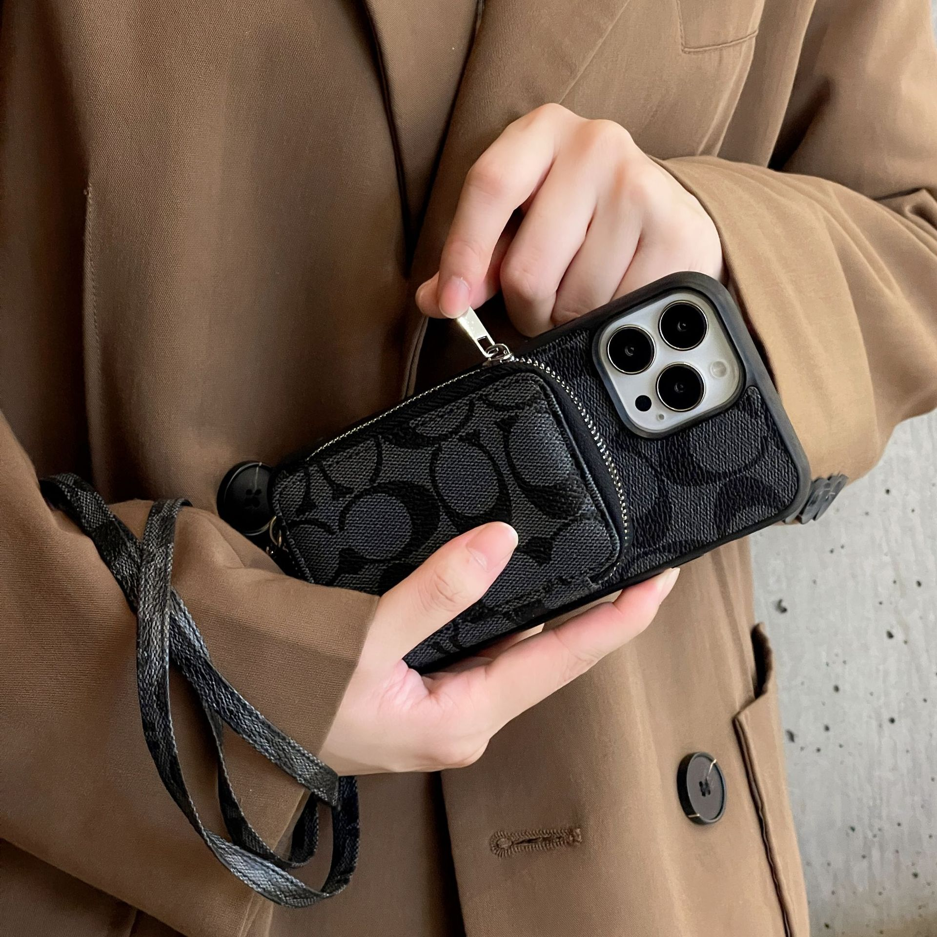 Coach Leather iPhone Zipper Wallet Case with Crossbody Strap
