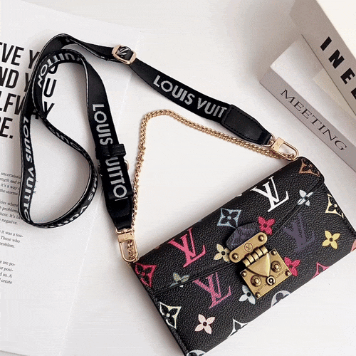 Louis Vuitton Monogram iPhone Wallet Case Magnetic Flip Cover With Crossbody Strap