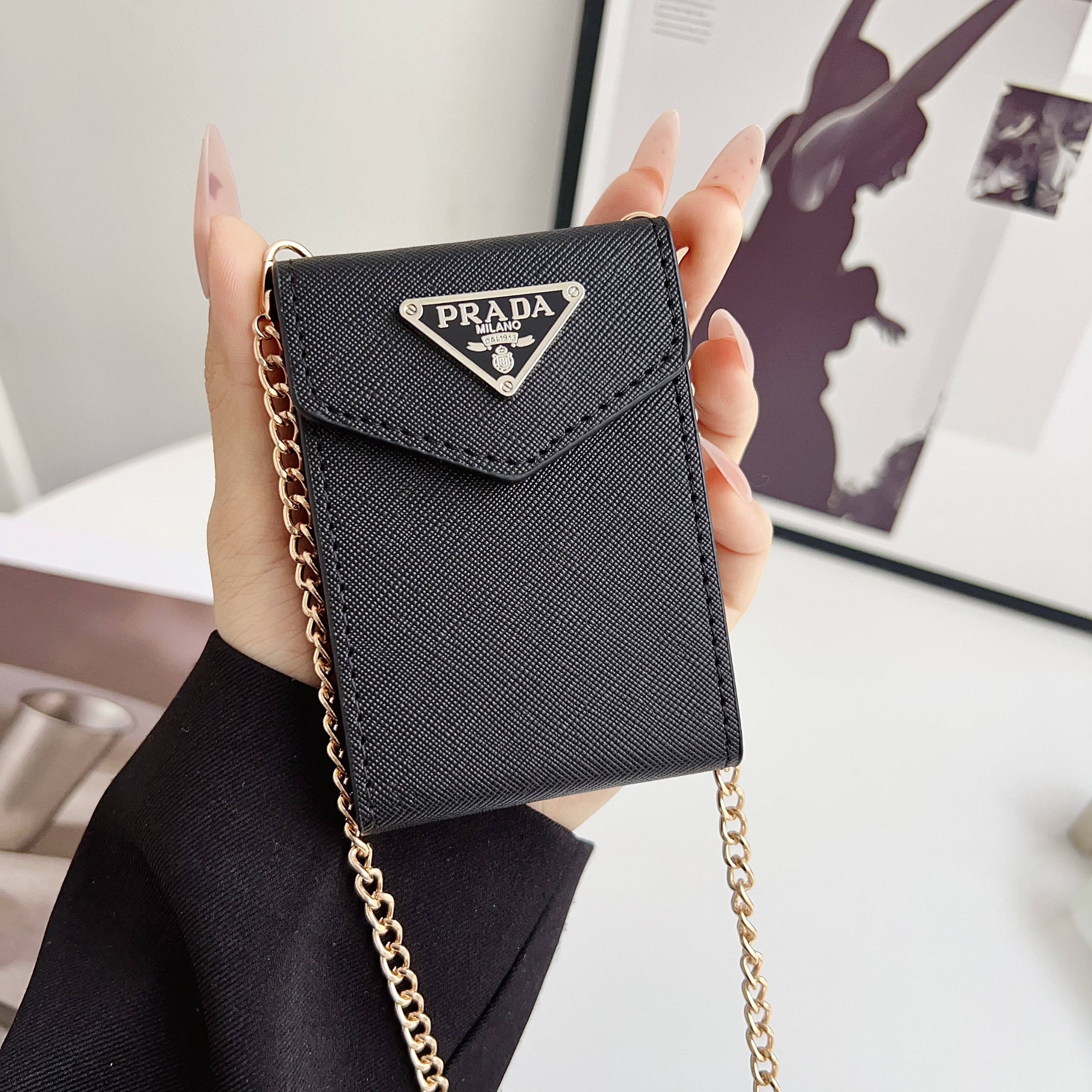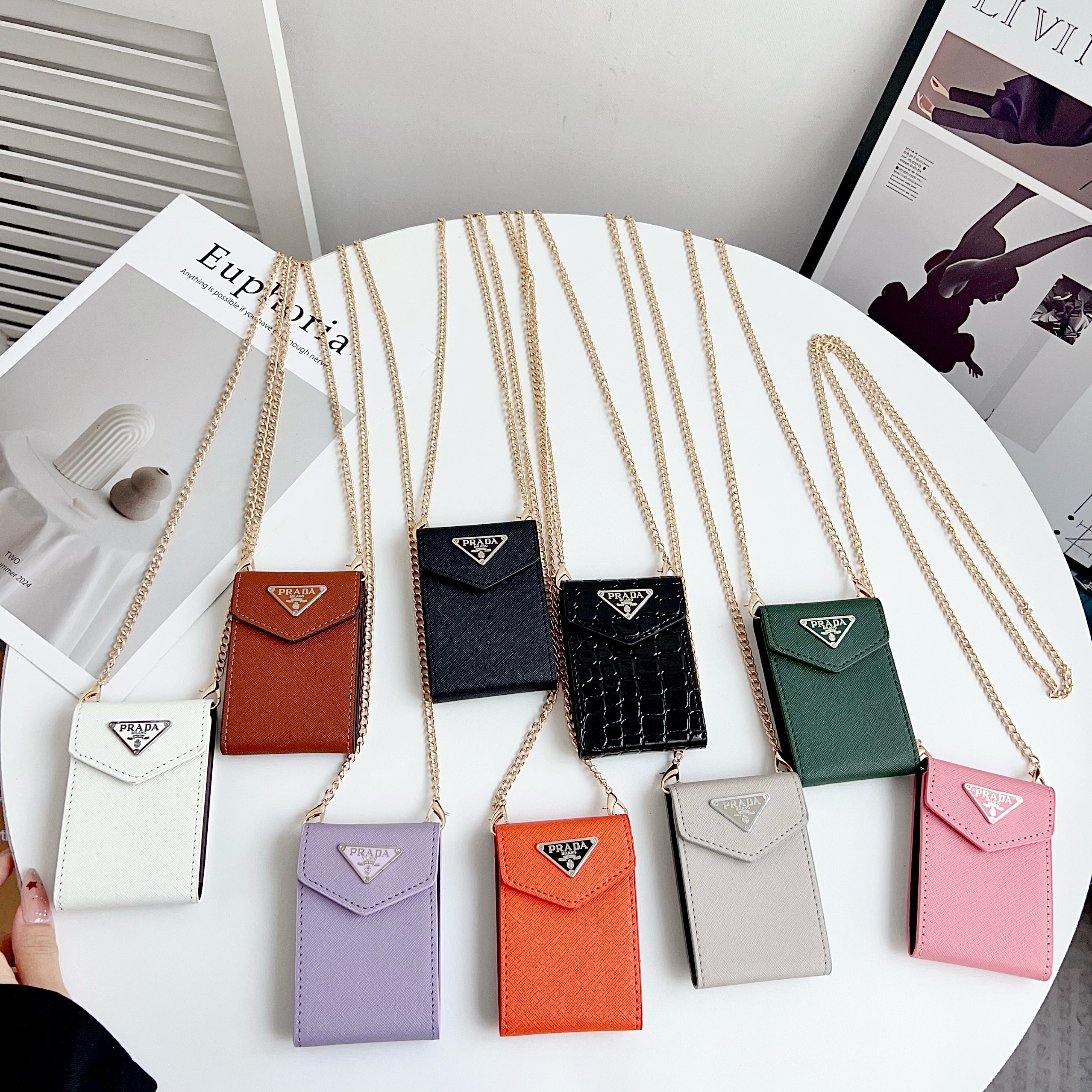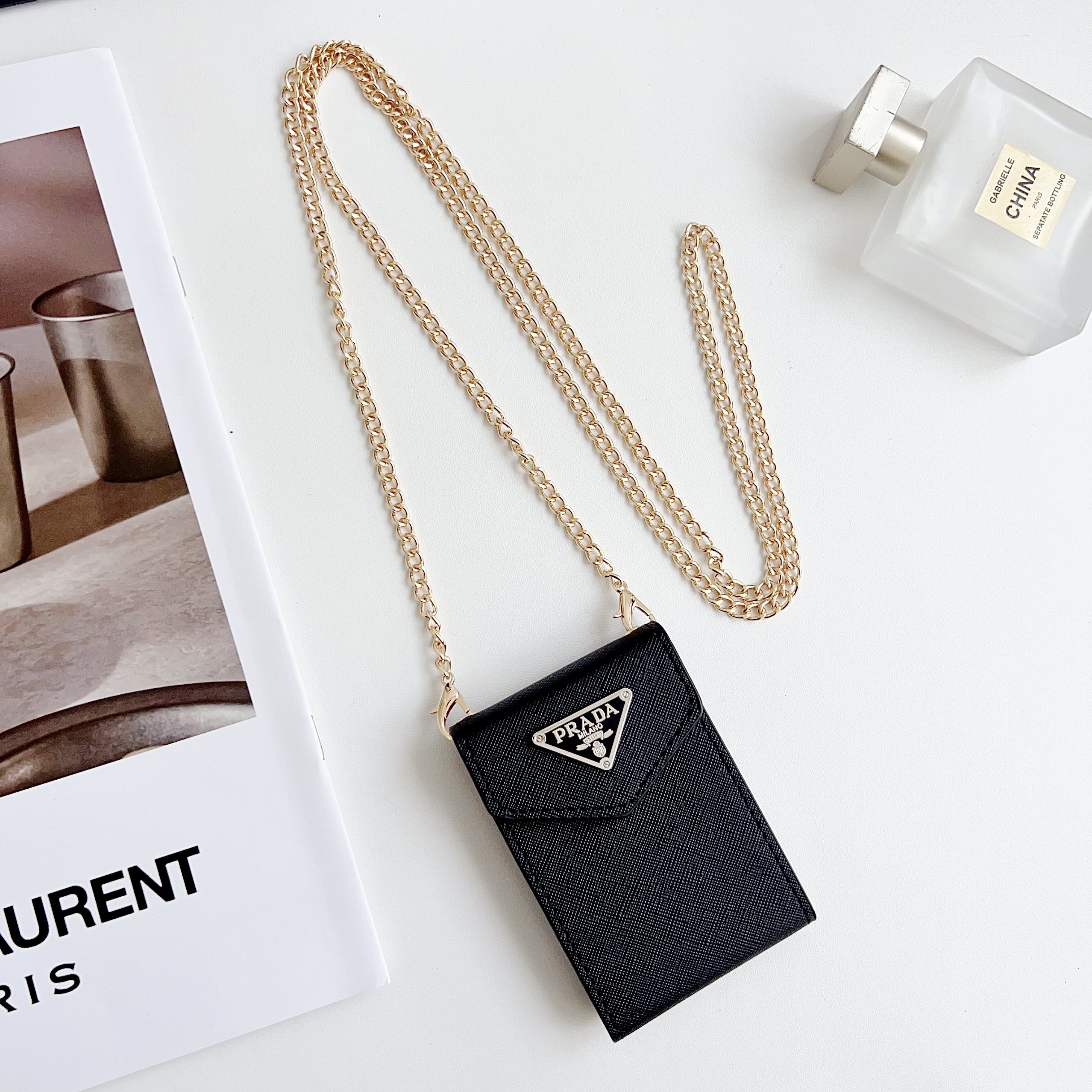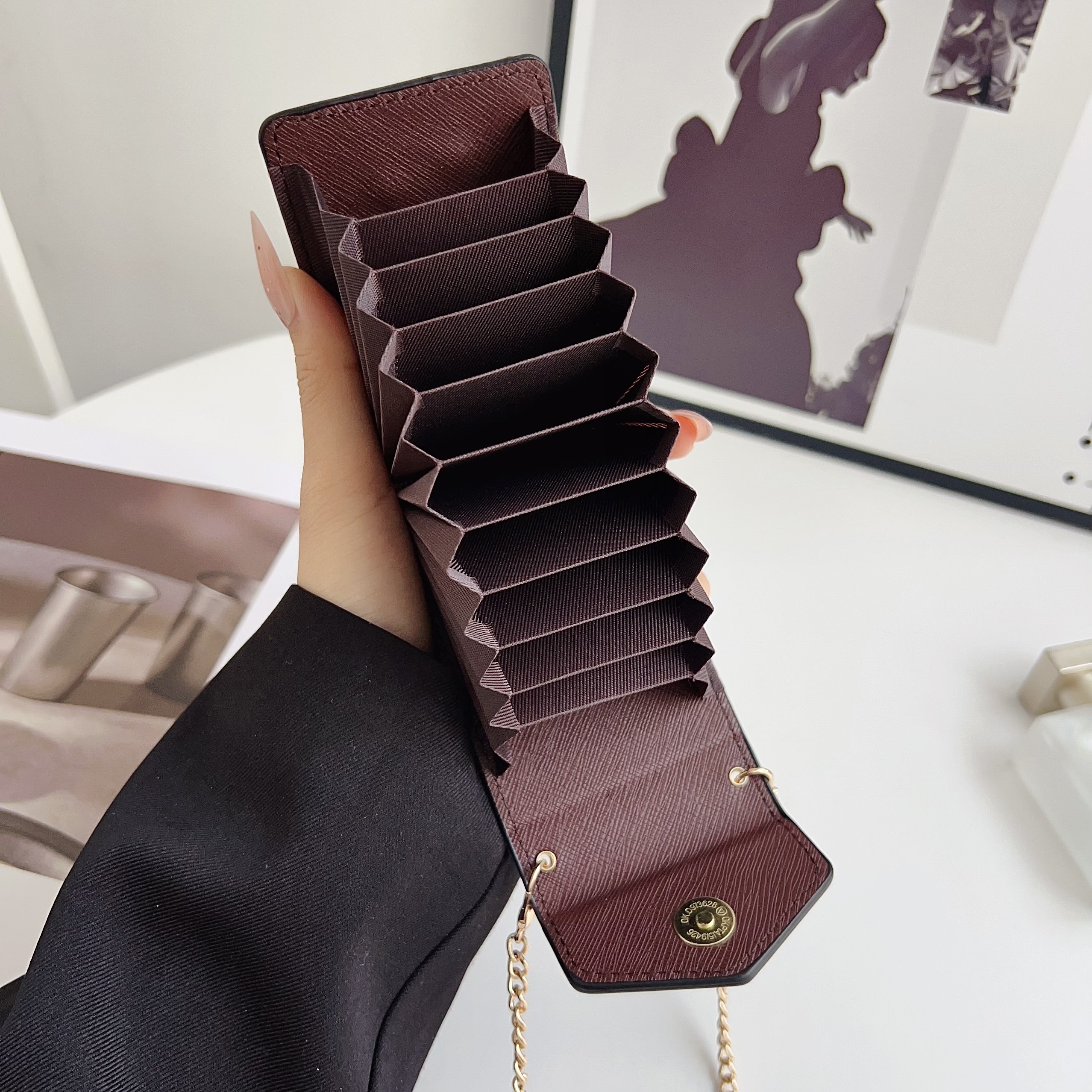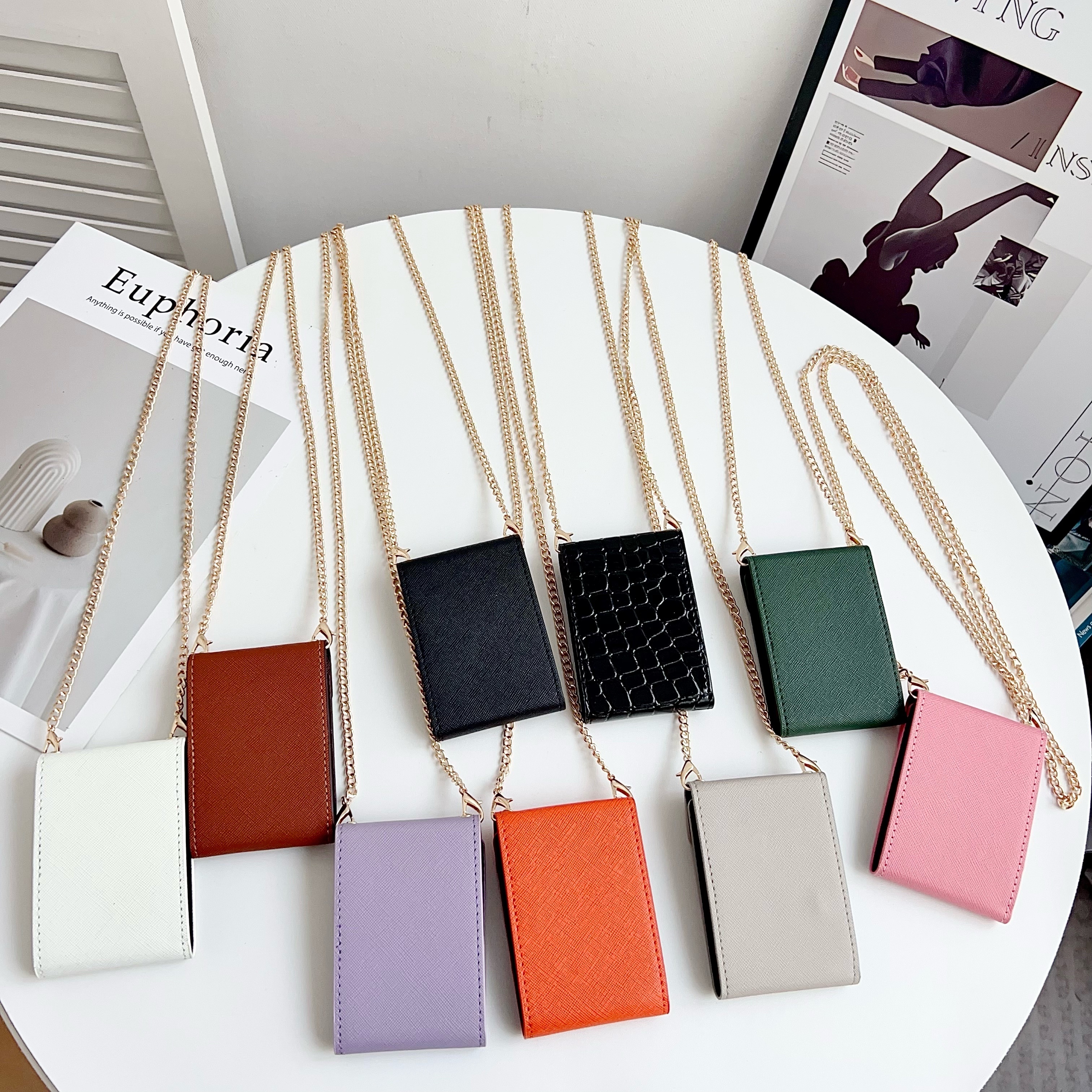 This new cardholder necklace is stylish and beautiful, ideal for carrying cards and other small items. Crafted from luxurious leather, it features a slim shoulder strap and a secure double snap closure. This small and practical accessory can be easily worn around the neck or slipped into a bag.