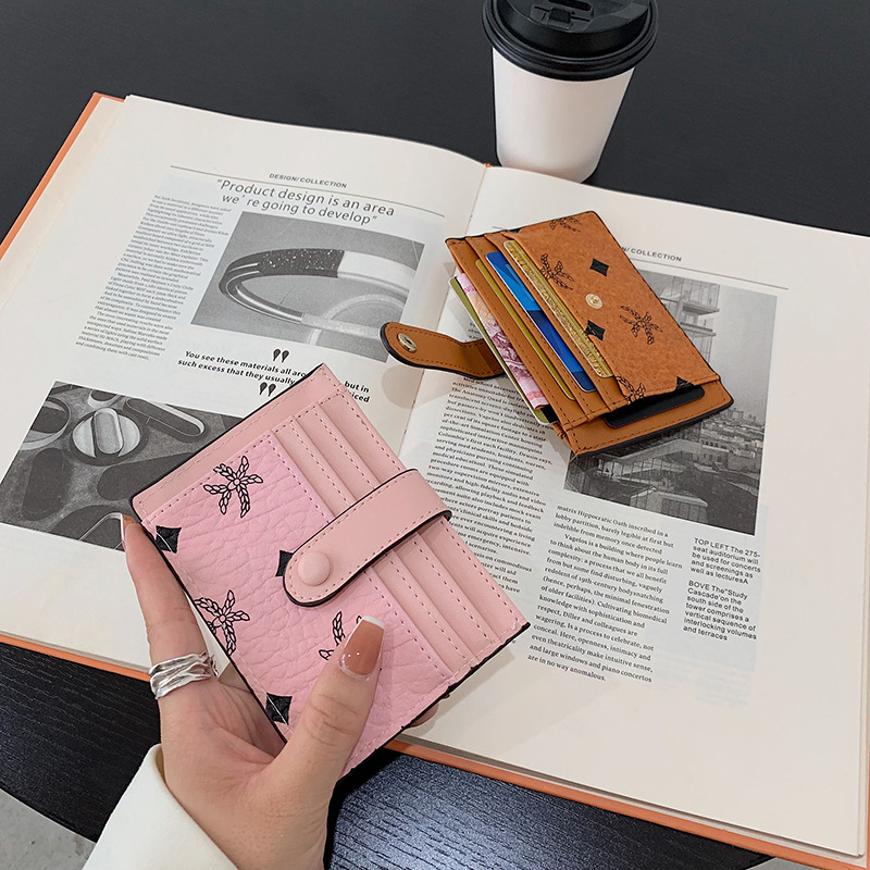 MCM Worldwide Classic Luxury Leather Wallet Card Holder With Snap Closure