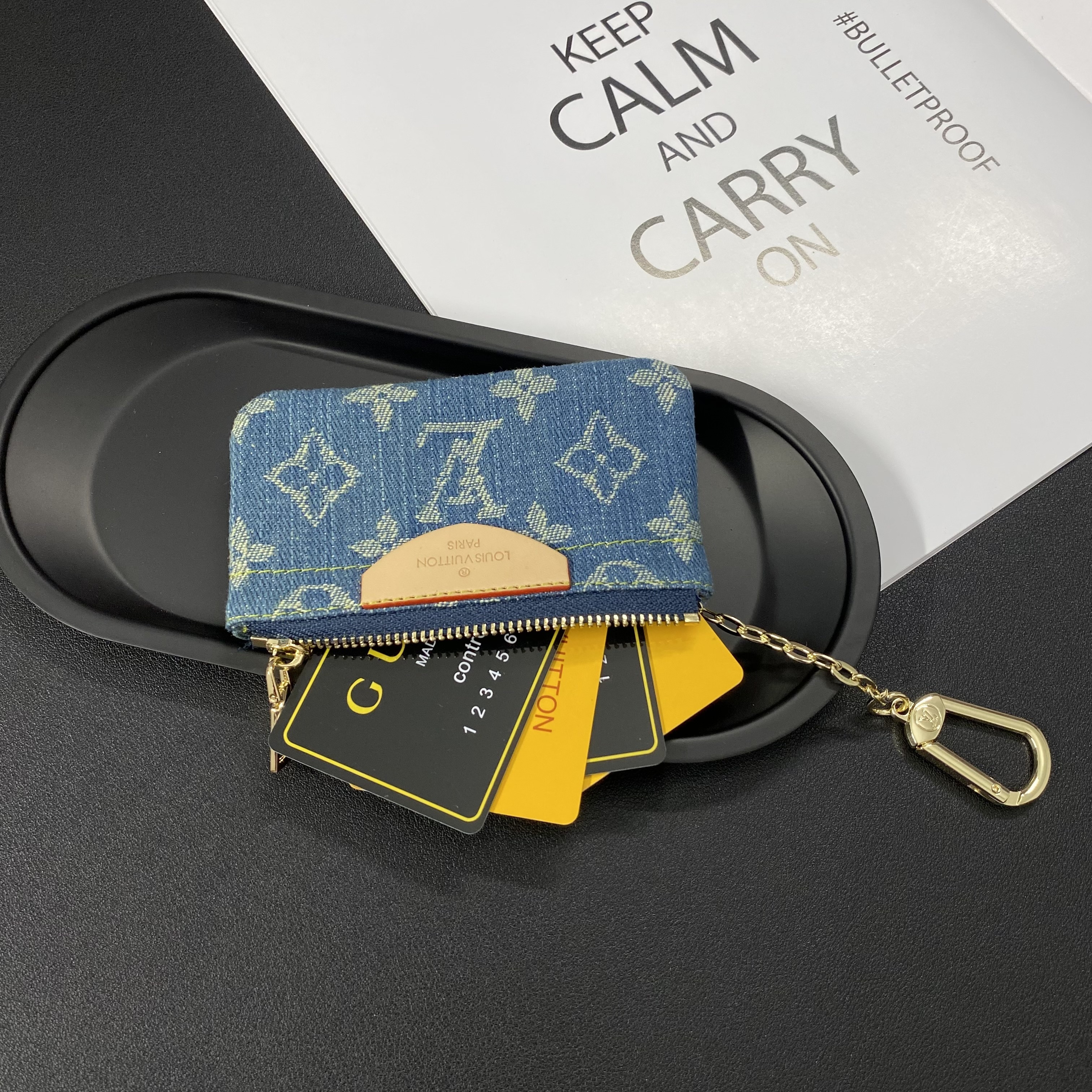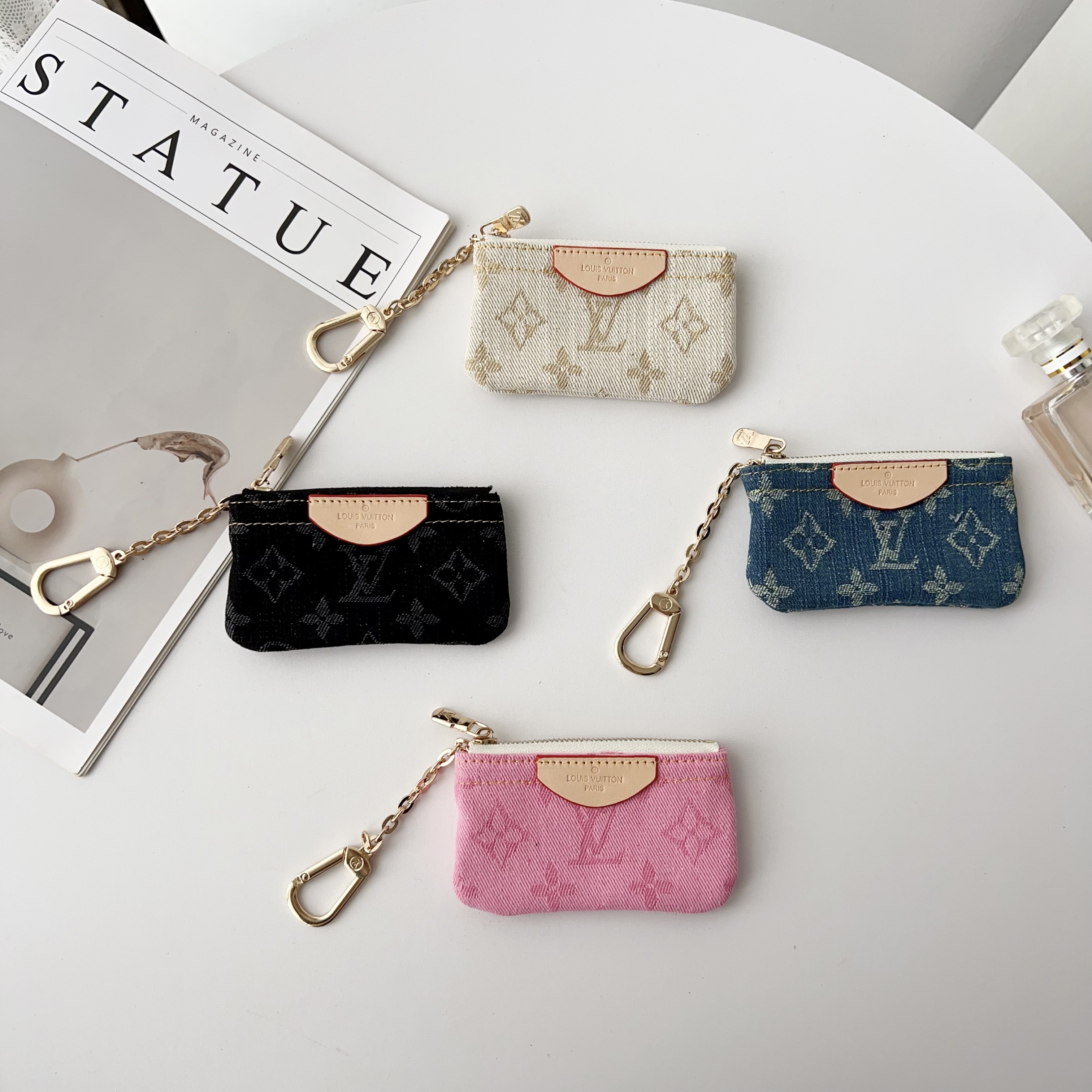 Louis Vuitton Denim Canvas Coin Purse with Zipper & Keychain