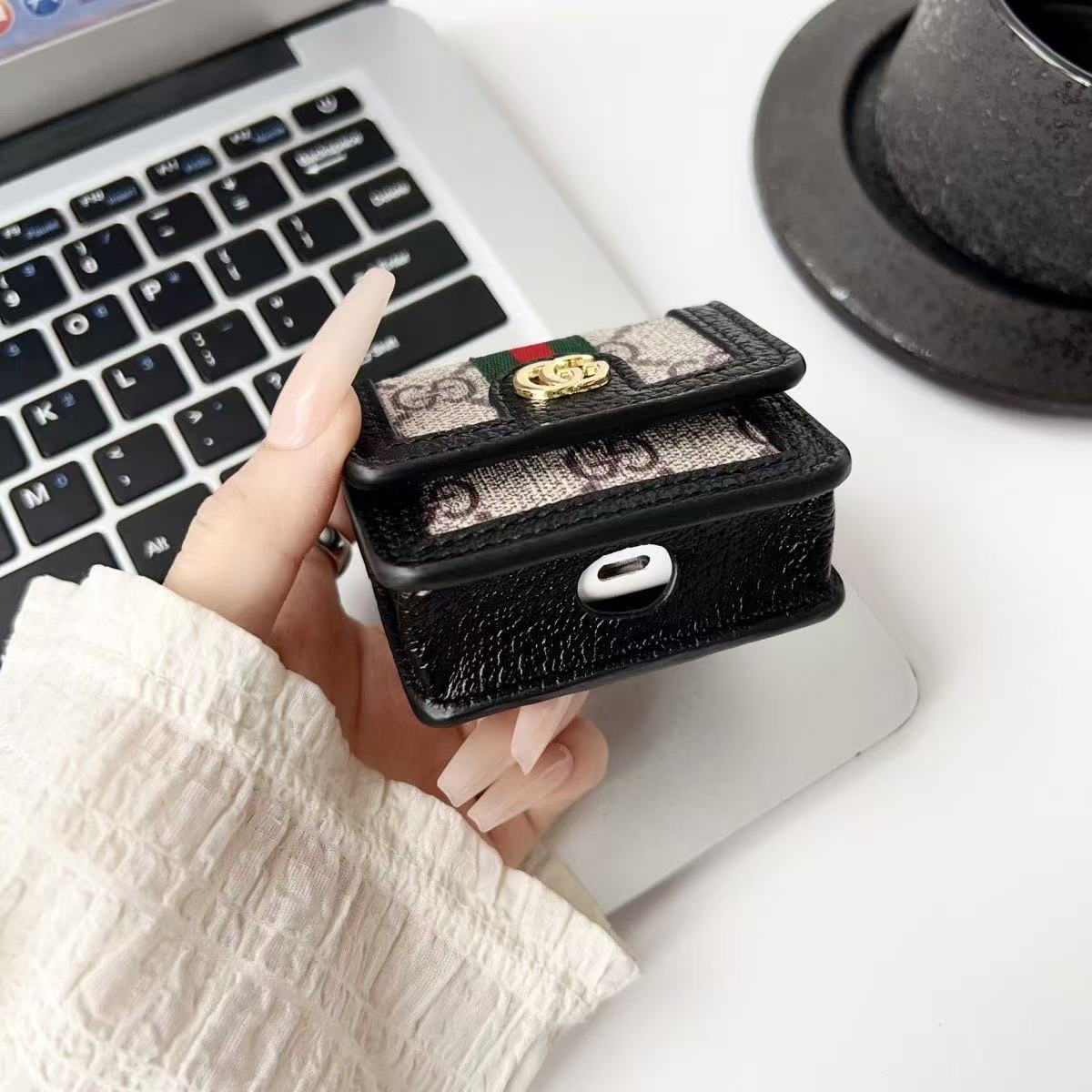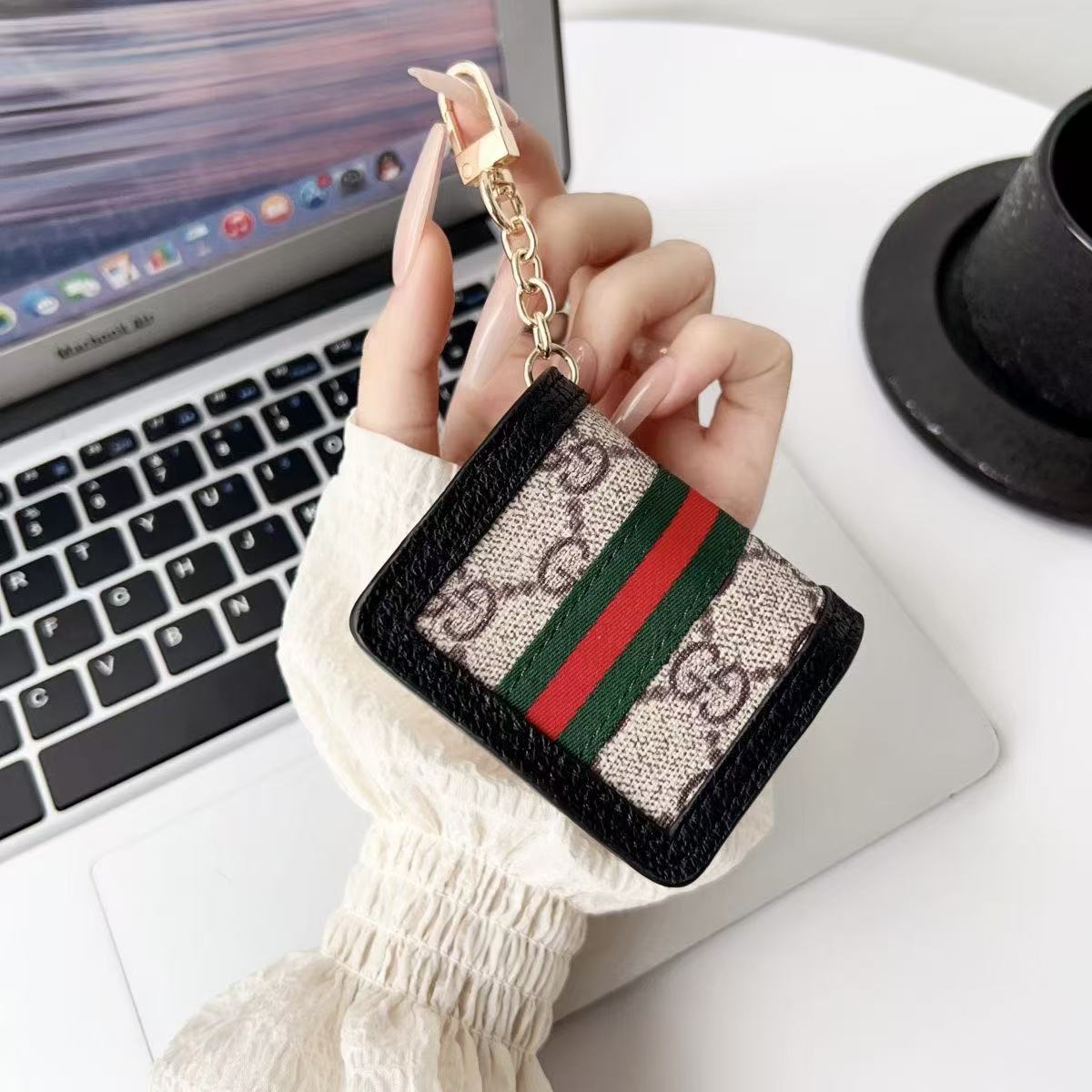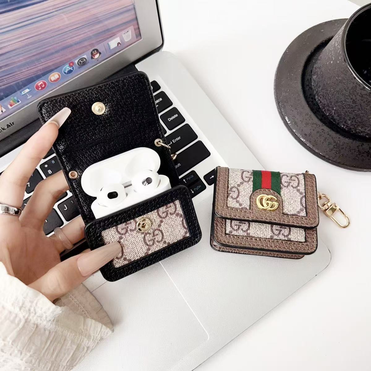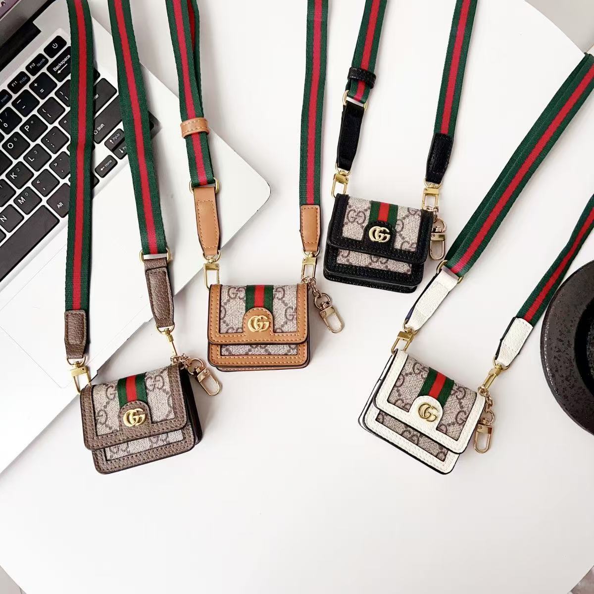Gucci Luxury Leather Airpods Case With Crossbody Strap