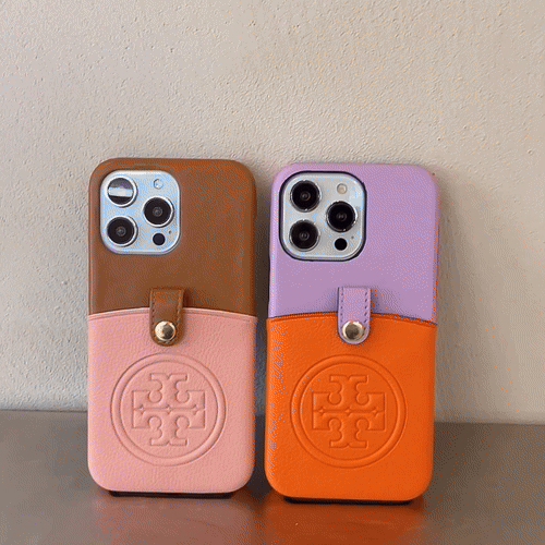 Crafted from luxurious leather, this TB cell phone pouch combines convenience and elegance with a built-in card holder for important cards. It combines style and functionality, making it perfect for traveling on the go. Featuring a snap-on card holder to conveniently carry your essentials, this case combines functionality with chic design, making it easy to use wherever you go.
