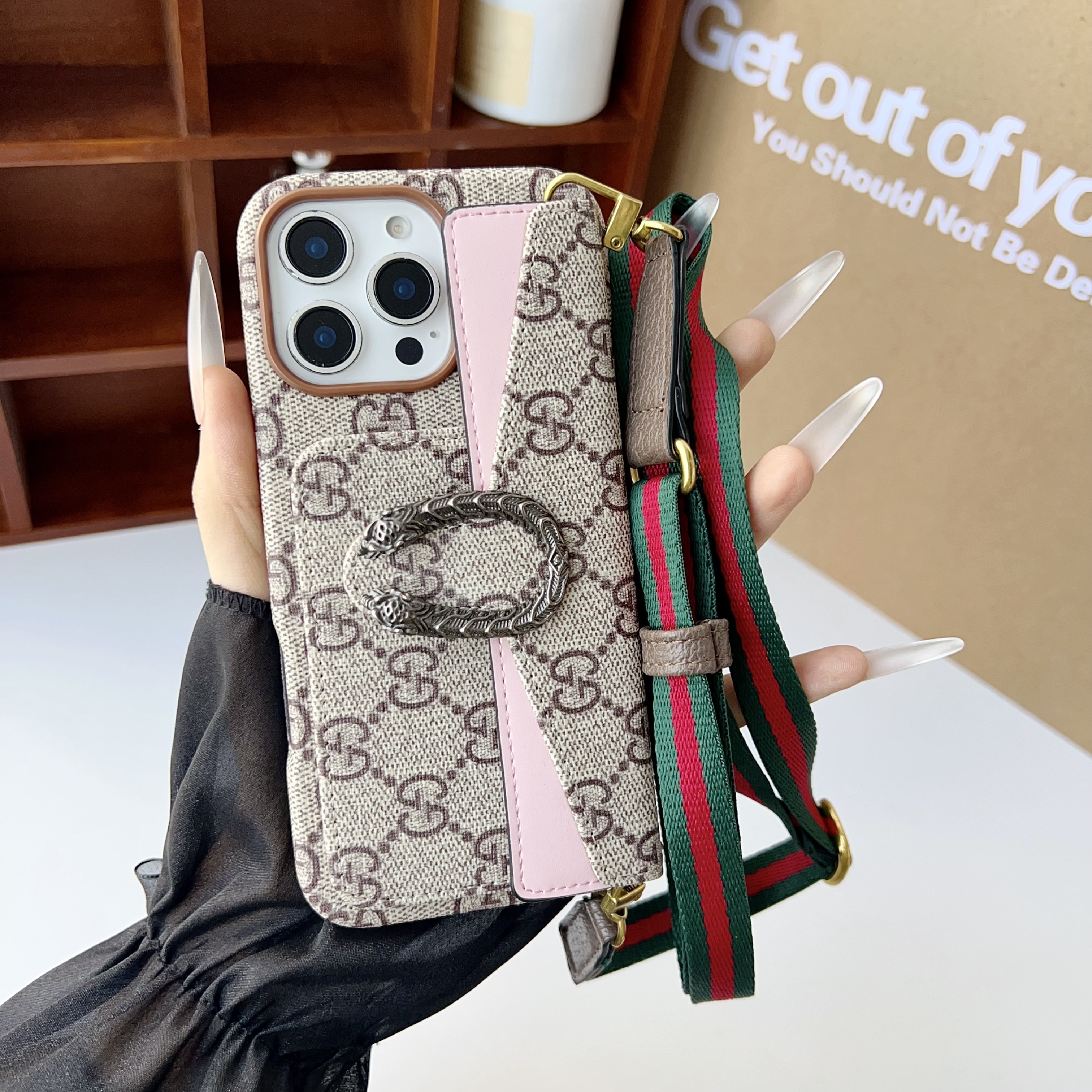 Gucci Dionysus Leather iPhone Wallet Case With Crossbody Strap