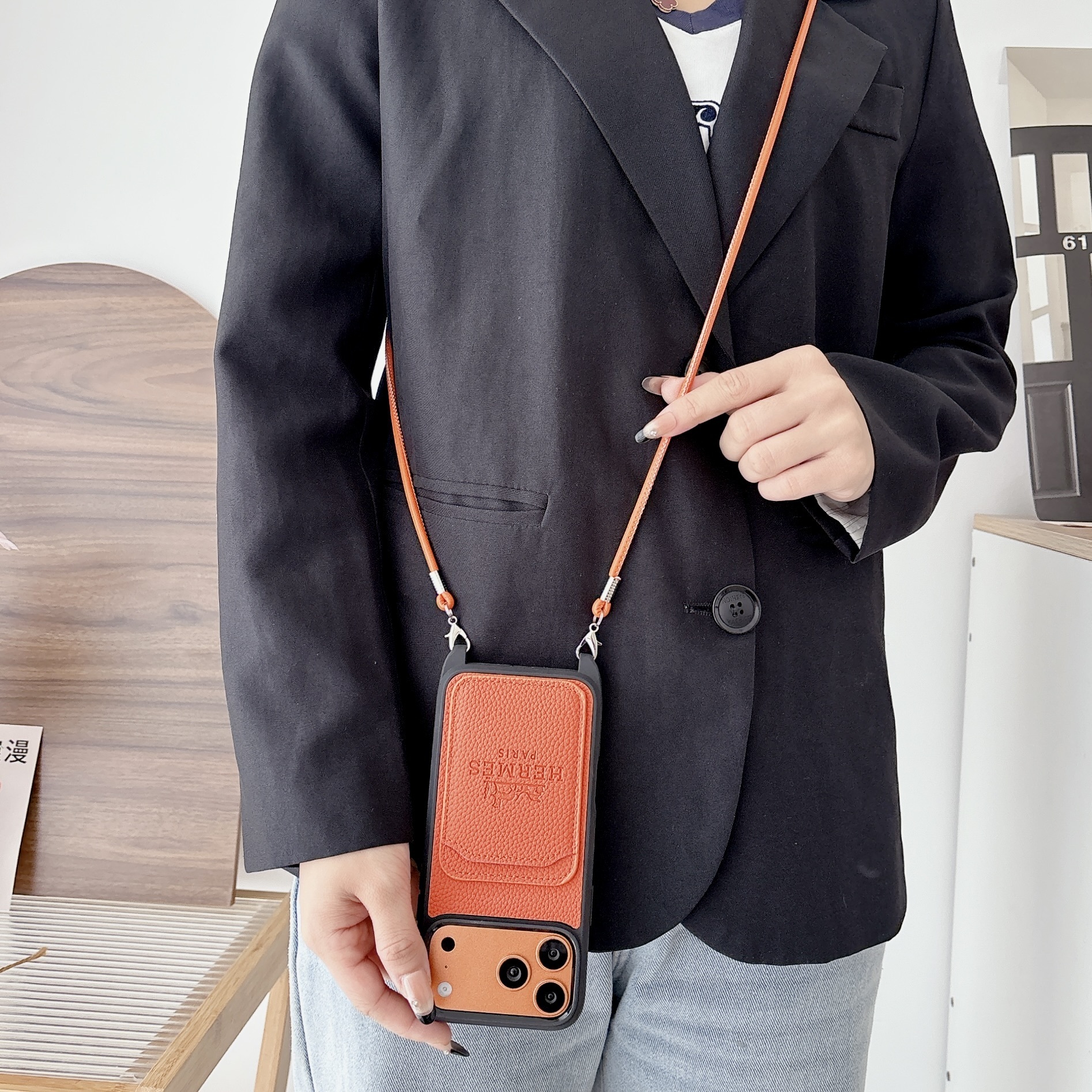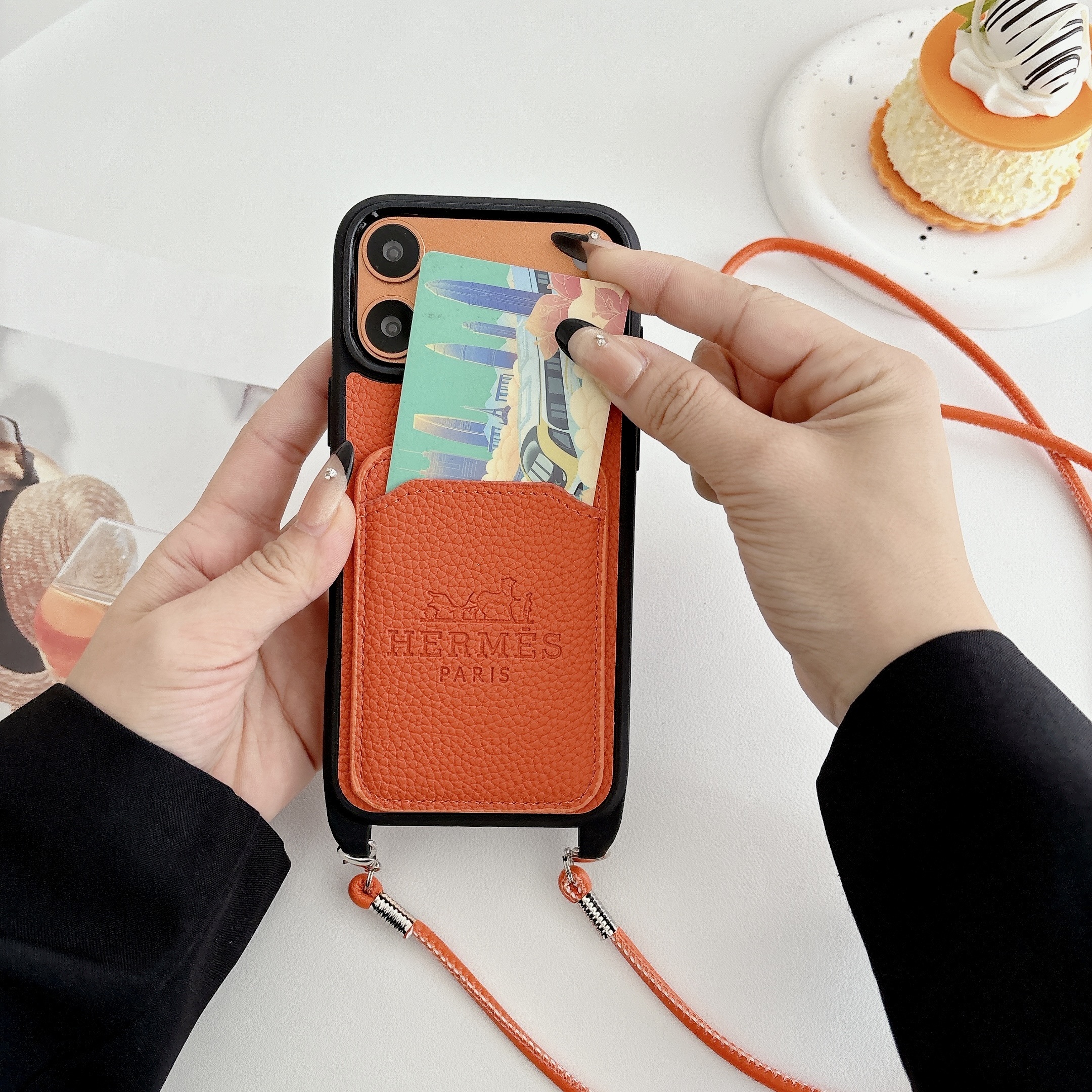 Hermès Leather iPhone Wallet Case With Crossbody Strap