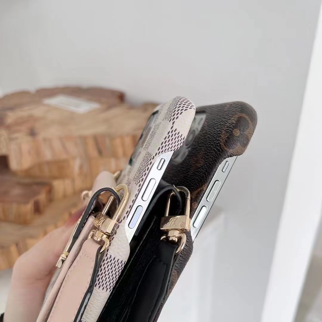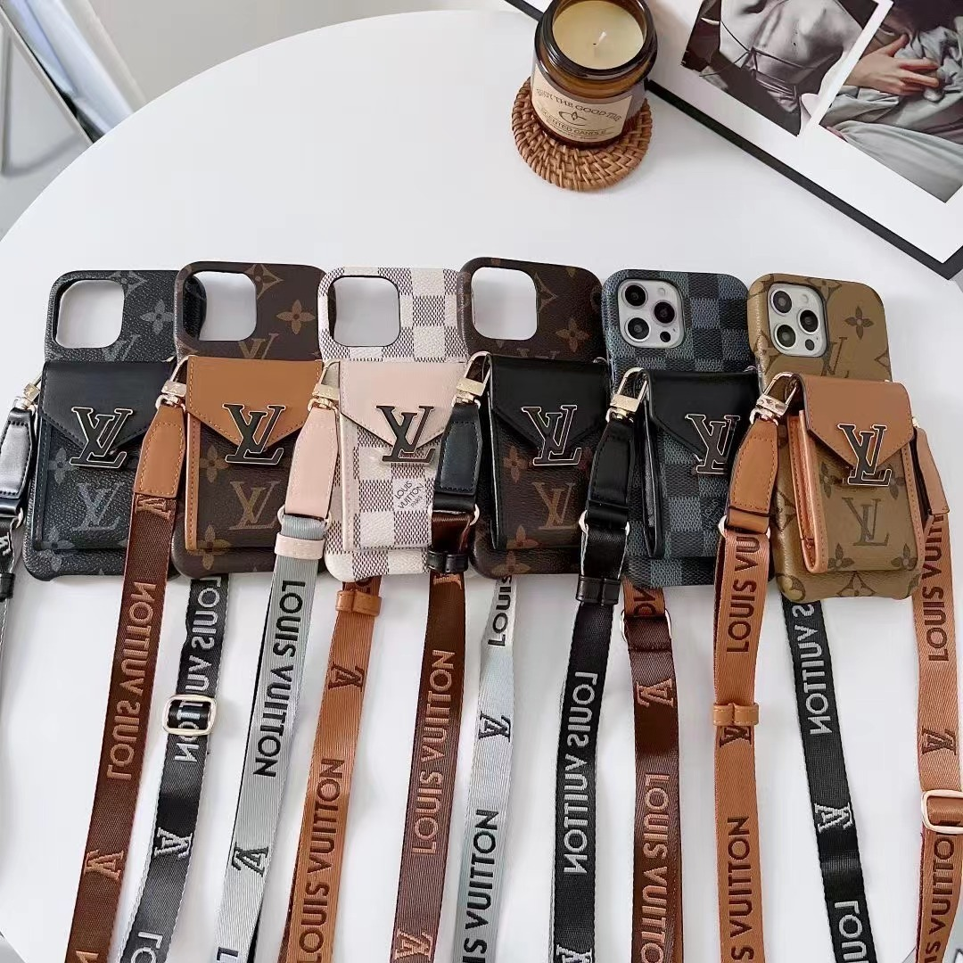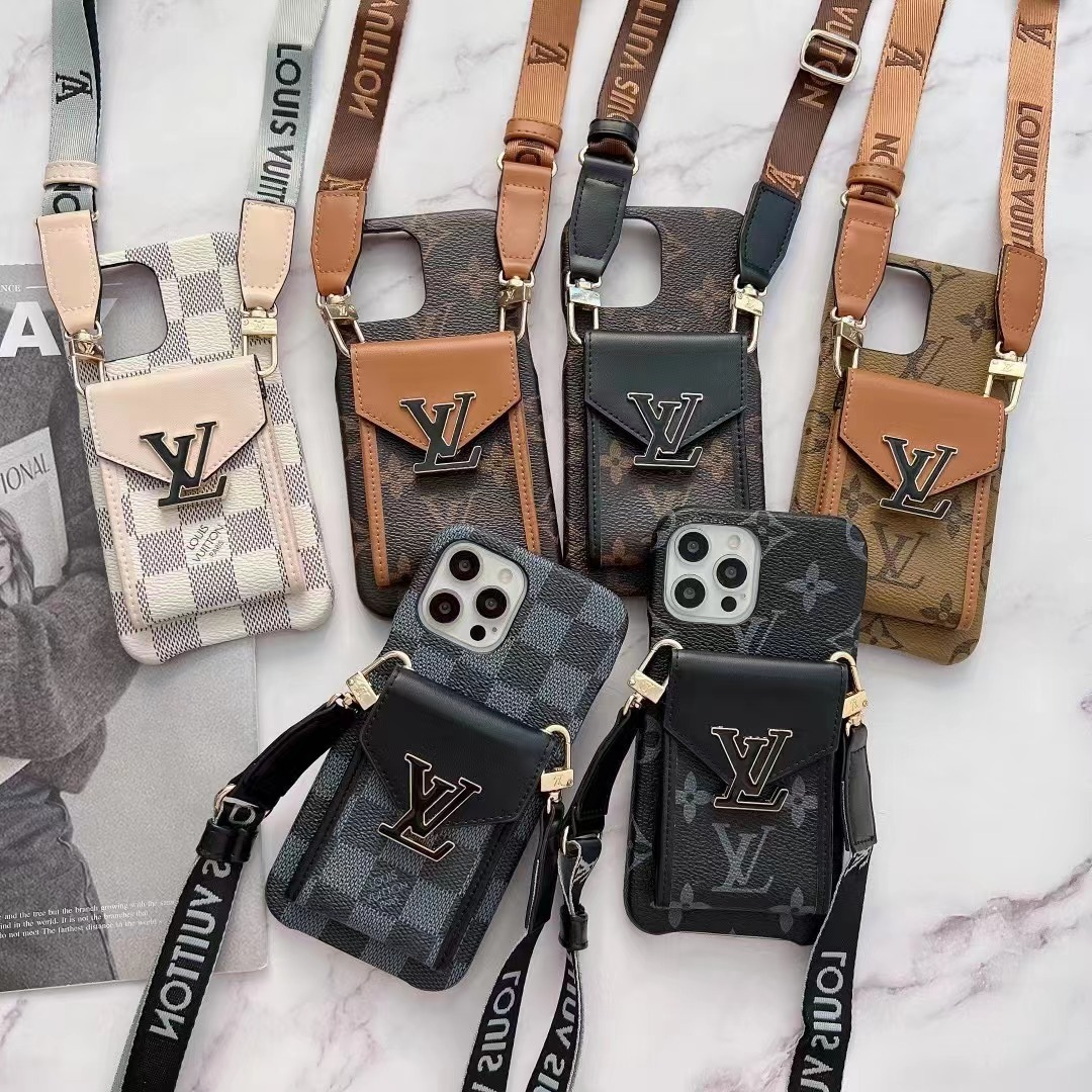 Louis Vuitton Leather iPhone Wallet Case With Crossbody Strap