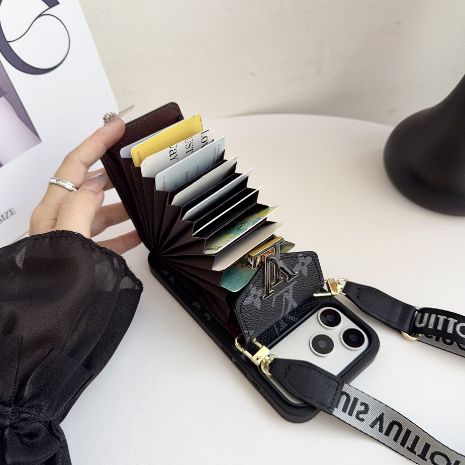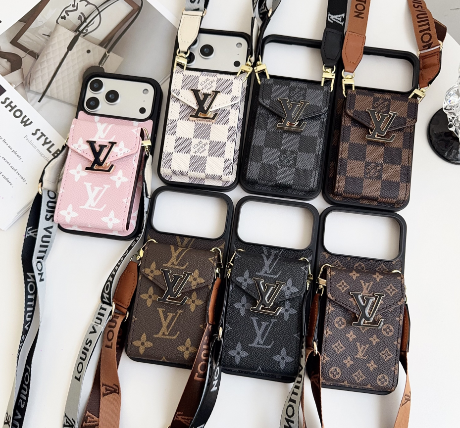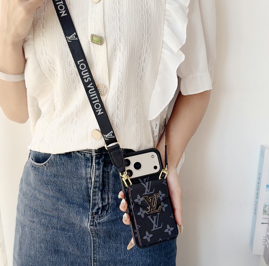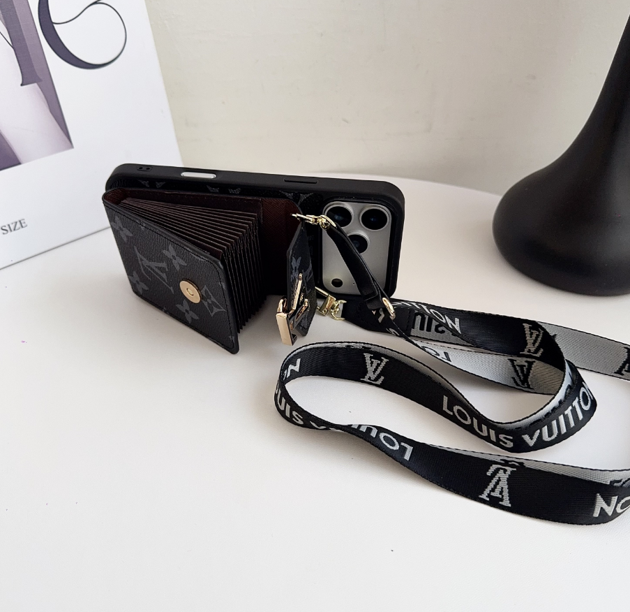 Louis Vuitton Leather iPhone Wallet Case With Crossbody Strap
