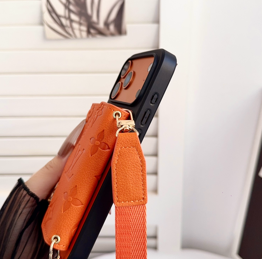 Louis Vuitton Leather iPhone Wallet Case With Crossbody Strap