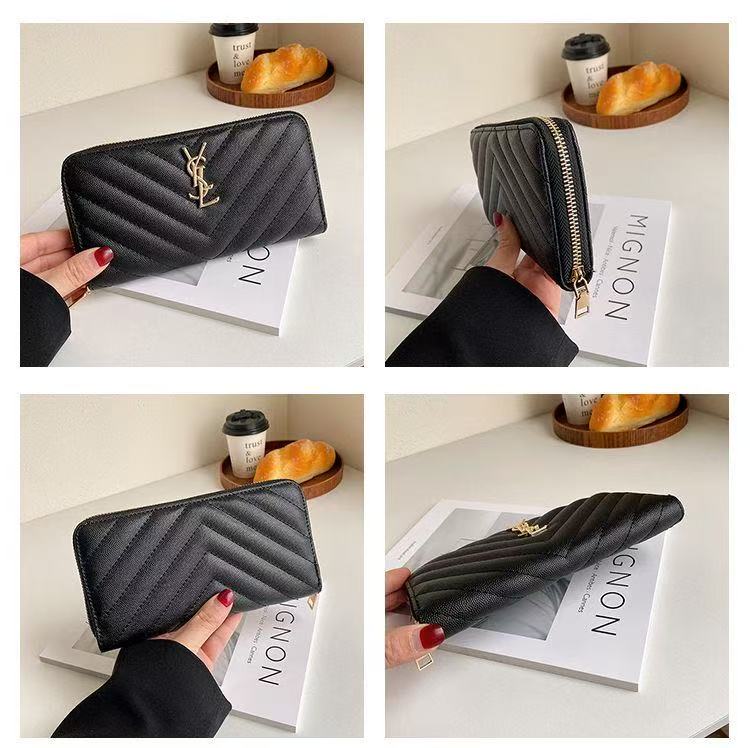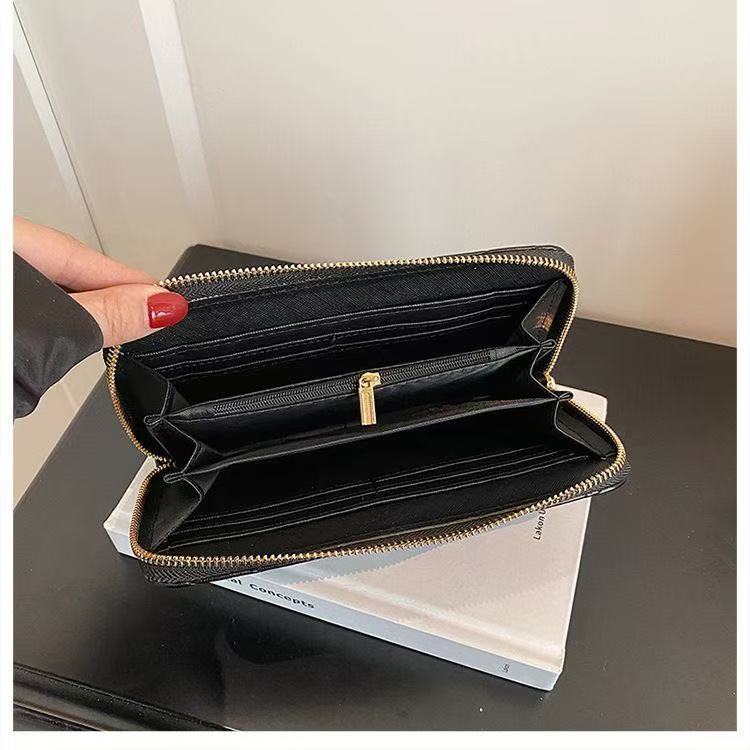 This long leather wallet features a zipper closure. The central zipper pocket and two large storage compartments can store cards, banknotes, coins and other daily documents.
