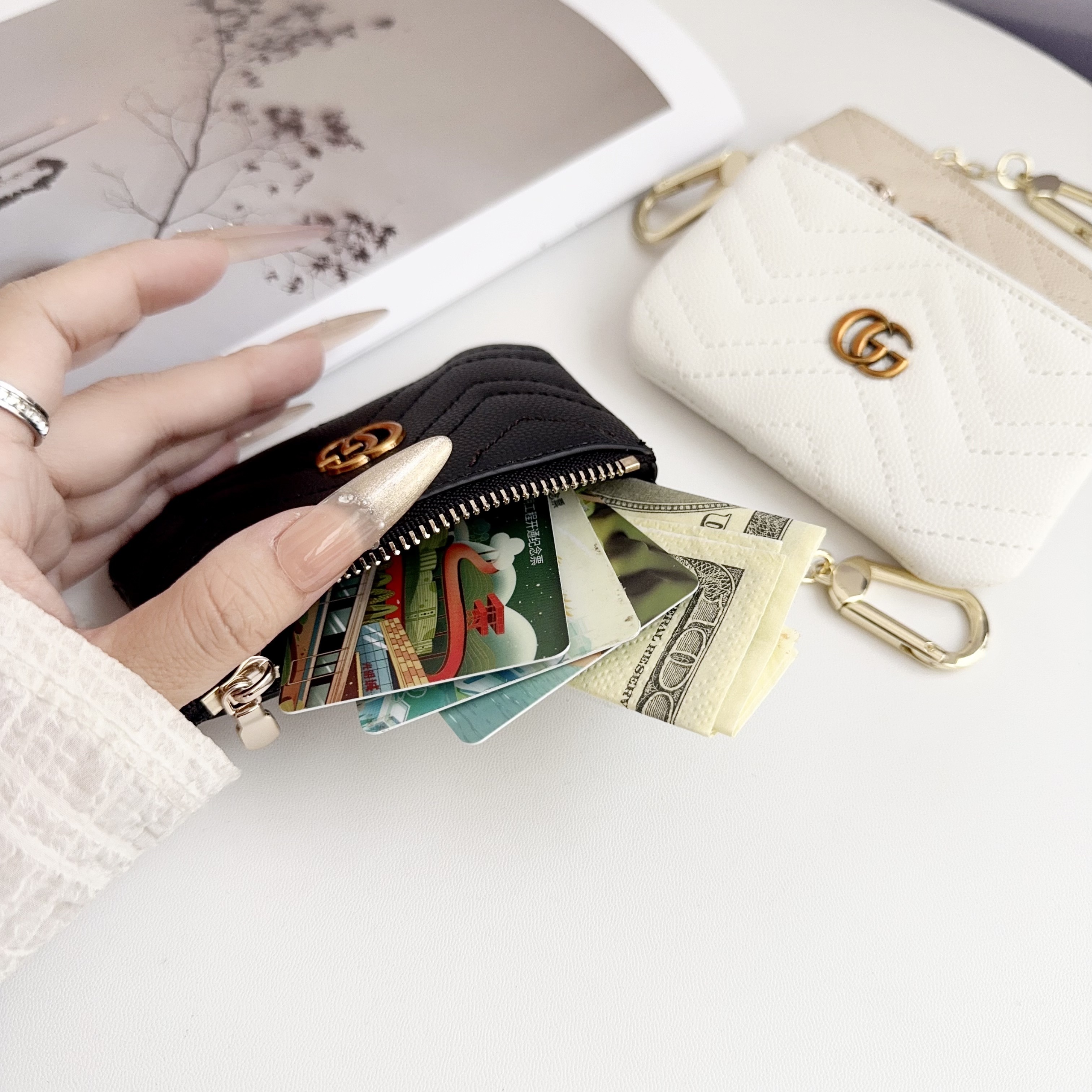 - [Fashionable and versatile]- It can carry coins, folded bills, car keys, house keys, bank cards, ID cards, driver's licenses, headphones, hearing aids, lipsticks and other small items.